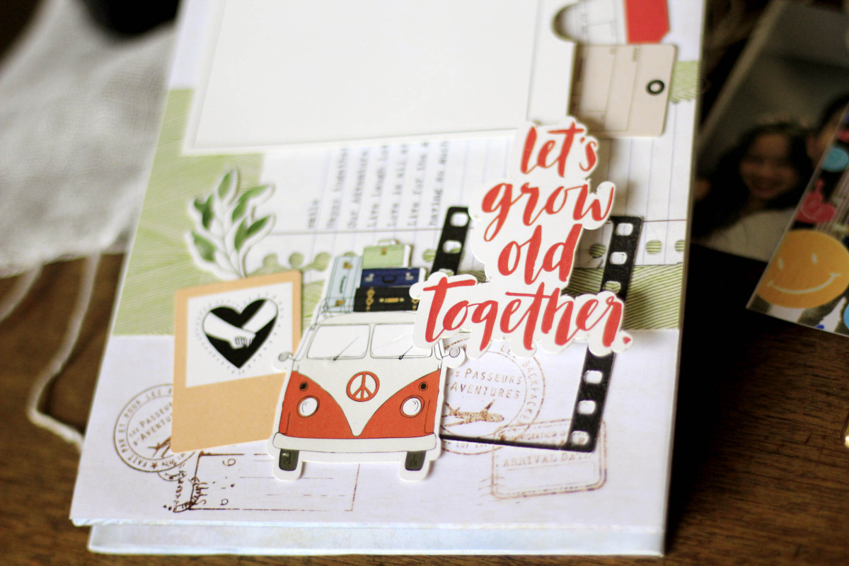 Team mê dịch chuyển: Hình ảnh chiếc xe van cam rực rỡ, vali xếp lớp và những dấu mộc bưu điện sẽ khiến bất cứ tâm hồn yêu xê dịch nào cũng phải “liêu xiêu”. Ngay trang bìa là một khung hình trắng cực xịn, chờ bạn đặt vào tấm ảnh “chất” nhất để khoe ngay với cả thế giới! Thông điệp cực ngọt “Let’s grow old together” – Một lời rủ rê siêu đáng yêu để cùng nhau đi qua hết những tháng năm rực rỡ.