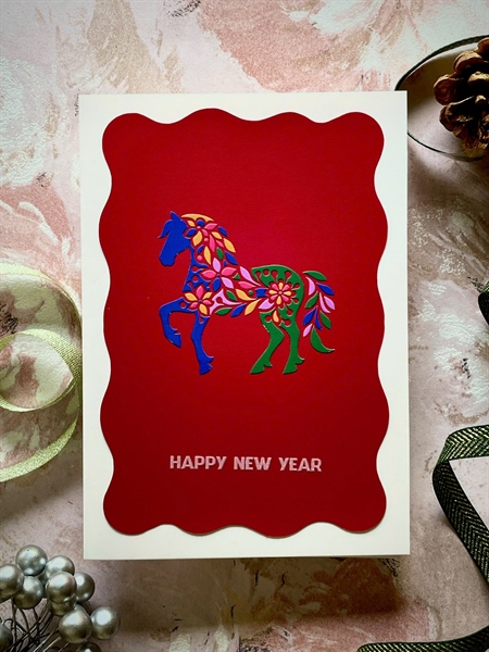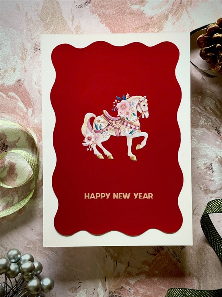 01 Thiệp Happy New Year Handmade chủ đề Ngựa (đa dạng mẫu mã theo lựa chọn).
