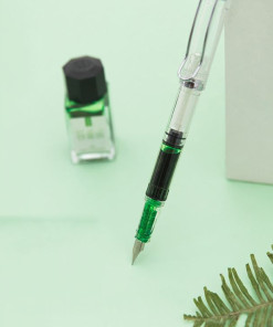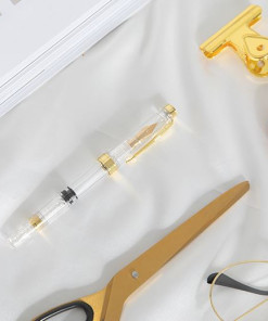 Viết máy trong suốt với thiết kế tinh tế, sang trọng với hai đầu ngòi viết máy và viết lông có thể thay thế.