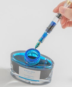Khi bơm mực không cần tháo đầu bút, chỉ nhúng ngòi vào hũ mực và xoay đầu bút.